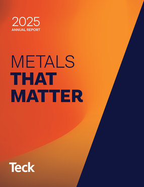 2024 Annual Report cover with text: Metals That Matter and Teck logo on blue and orange background.